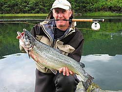 Vangen 607 Phantom tohånds (4) Vi har jobber mye med å utvikle en helt ny serie tohånds laksestenger. Nå forligger endelig resultatet: Vangen Phantom 607 på 13, 14, 15 fot. Mange kapasiteter innen fluefiske har testet disse stengene gjennom lasksesongen 2001, og tilbakemeldingene har vært udelt positive: -Meget spenstige stenger, lett- og langkastede med perfekt balanse. Aksjonen er moderne progressiv og jevn, med nok stivhet i toppen samtidig som at sensitiviteten er der. Stengene jobber godt ned i rotstykket, både under kast og kjøring av fisk. Meget gode egenskaper for så vel spey- som overhodetkast. Vekten er holdt lav, men på et nivå slik at veggene ikke blir for tynne. Blanksen har nydeling finish; svart med klarlakk og svarte snurringer med sølvfarget av hardchrome. Håndtak av førsteklasses kork, nedre håndtak avsluttes med solid gummikork og økende diameter. Phantom har hele 10 års ubetinget garanti! Tre modeller (13’ 8-9, 14’ 9-11, 15’ 10-12) i prisklassene 3799,- 4199,-