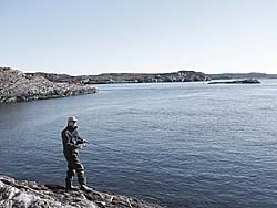 Hvor og når Her i Norge fanger vi sjøørret hele åreet, men uten tvil er det en periode som er bedre enn alle de andre og det er våren. Tiden fra den første snøen begynner å smelte og frem til ut mai er de absolutt beste ukene. Jeg starter gjerne jakten ganske tidlig for å finne de beste buktene og fjordarmene. Da får jeg også fulgt med i vanntemperaturen. Så når våren nærmer seg og du planlegger hvor du skal få en perfekt start på sesongen: Det er enkelt, ta for deg lokaldistriktet og se hvor ørretelver renner ut i sjøen. Bingo, nesten enhver vik i nærheten er et potensielt spiskammer for sjøørreten. Spesielt hvis du finner en god sandbunn med godt skjul (tangklaser, steiner etc), skal du forsøke der når flo sjø passer med solnedgangen, det er absolutt din beste sjanse. Det er viktig ikke å fiske der midt på dagen i godt sollys. I løpet av de siste årene har jeg kommet til at det er fullstendig bortkastet tid. Jada, av og til kan du se mye fisk, men problemet er at de kan se deg også.